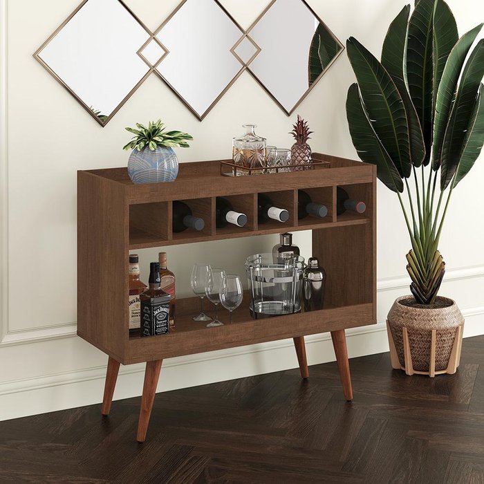 Aparador Retrô Bar Royal Luxo com 6 Adega Canela - Lh Móveis