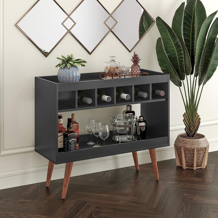 Aparador Retrô Bar Royal Luxo com 6 Adega Preto - Lh Móveis