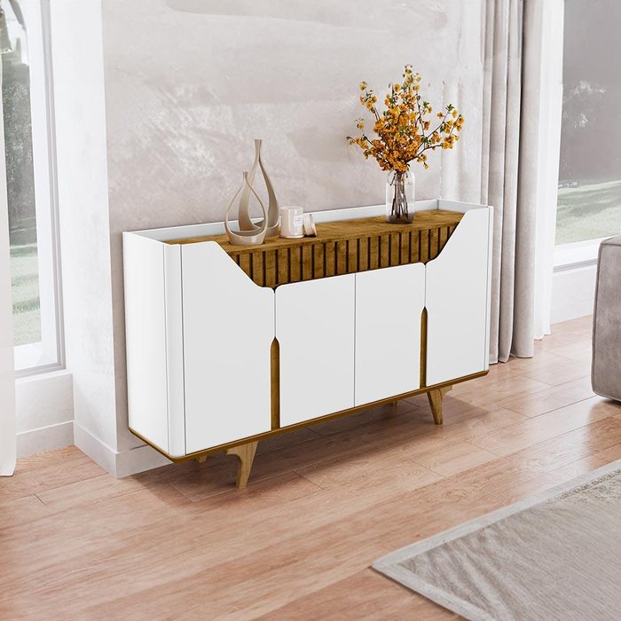 Aparador Ripado 4 Portas Branco Naturalle Tâmisa Bechara