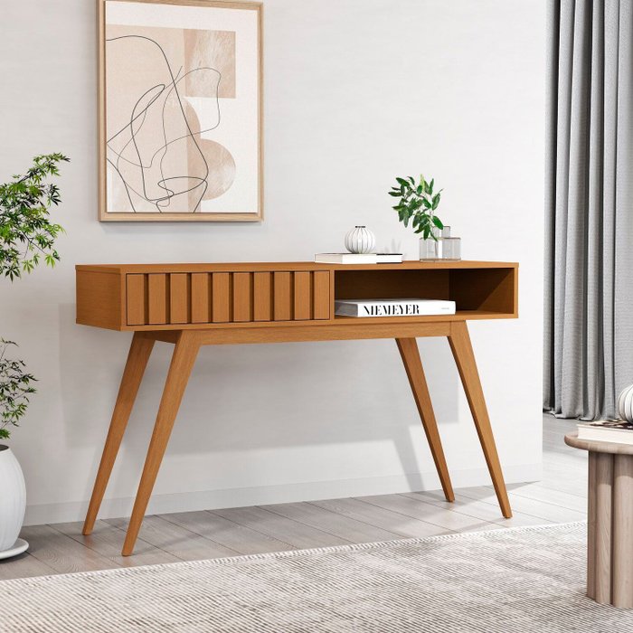 Aparador Ripado Açaí com 1 Gaveta 136cm Nature