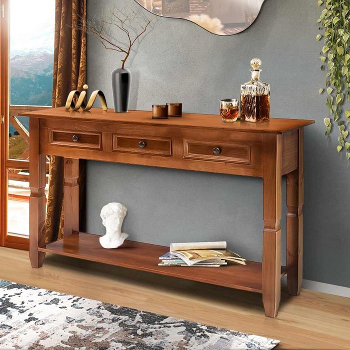 Aparador Rústico De Madeira Maciça 3 Gavetas Shop JM