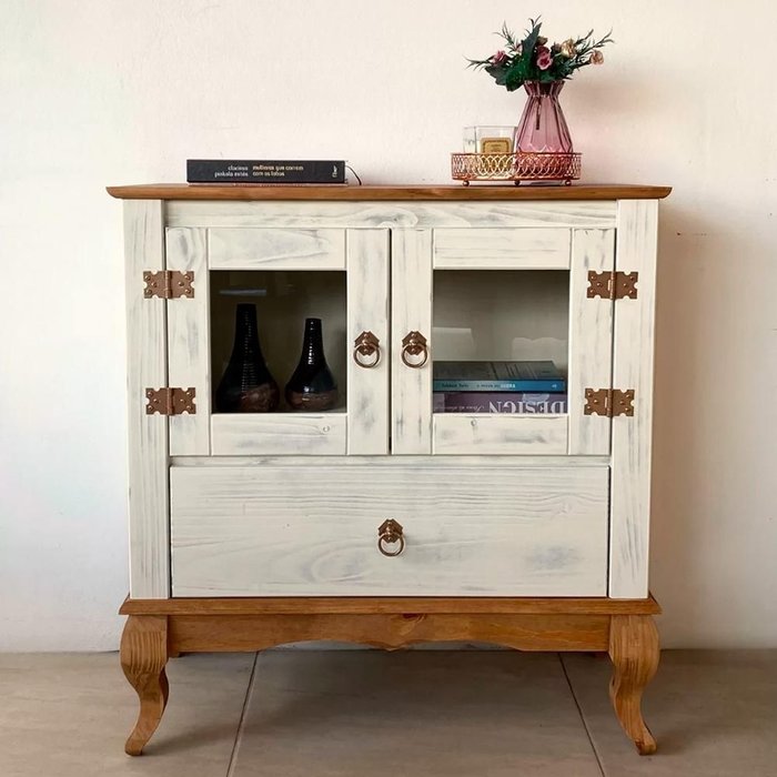 Aparador Rústico Madeira Maciça 2 Portas Vidro Branco Garapa D120vl Denk Branco