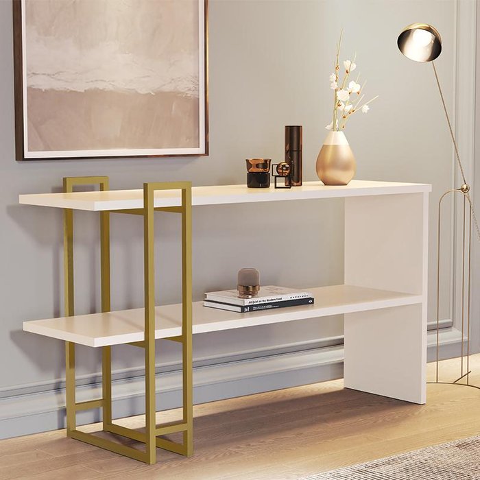 Aparador Sala de Estar Jb 4034 Pé Metal Perola/dourado