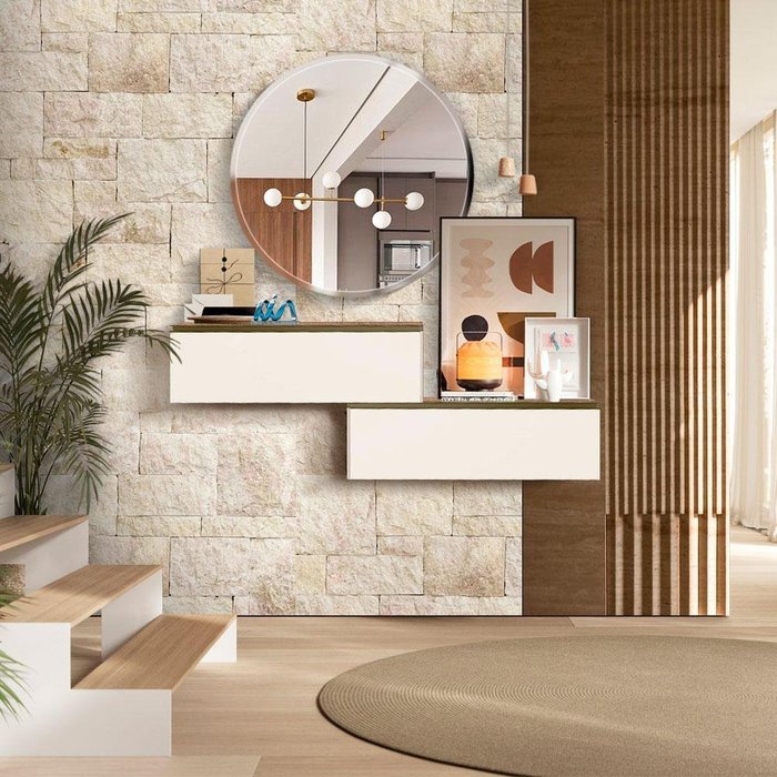 Aparador Suspenso Com 2 Portas Basculantes 100% MDF Carvalho Off White Cetim Soal Shop Jm