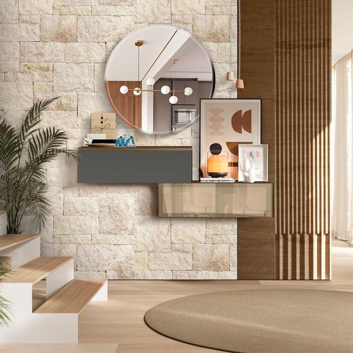 Aparador Suspenso de Vidro com 2 Portas - Soal Shop Jm Amêndoa cinza
