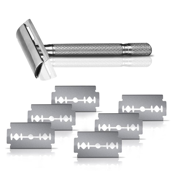Aparelho Barbear Antigo De Metal Barba Retrô + 7 Lâminas