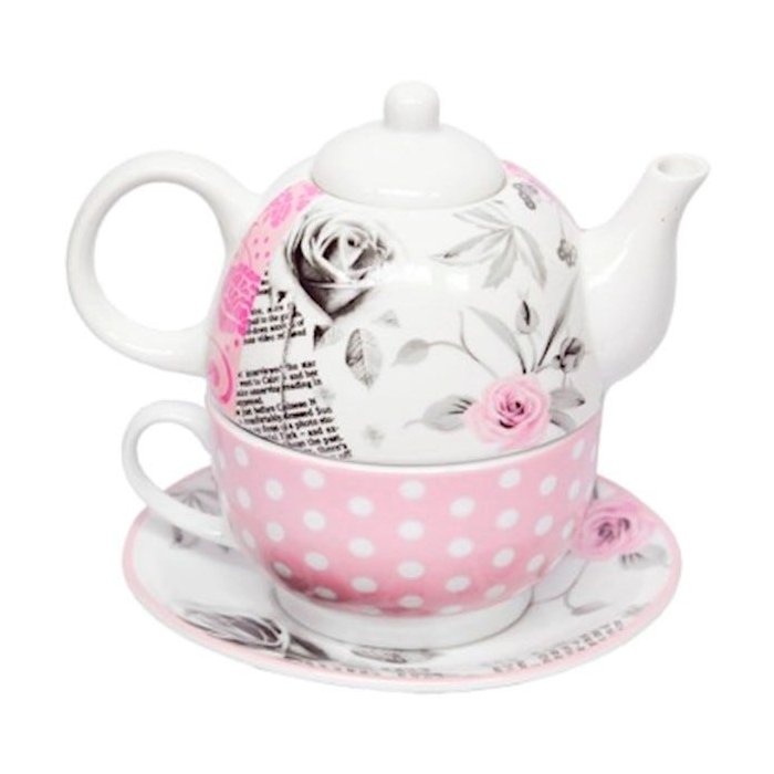 Aparelho de Chá 3 peças com bule xícara e pires porcelana DM Brasil DMP4814