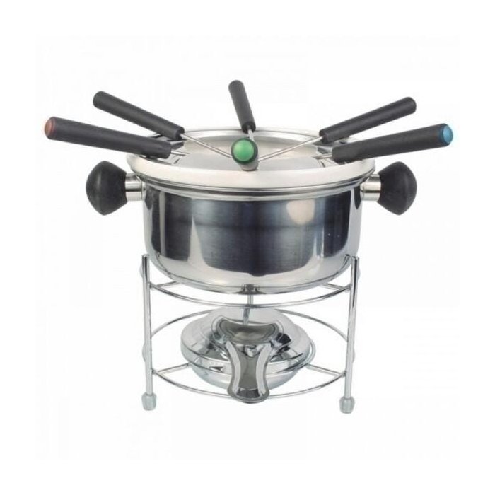 Aparelho de fondue em metal com 6 espetos. Para quem deseja saborear um delicioso fondue a qualquer momento. Ideal para ocasiões especiais. Não levar ao forno ou microondas.