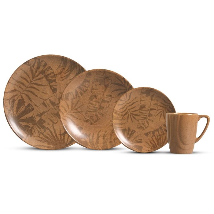 Aparelho de Jantar 16 Peças Palm Tree Terracota C/ Caneca. Alleanza Cerâmica