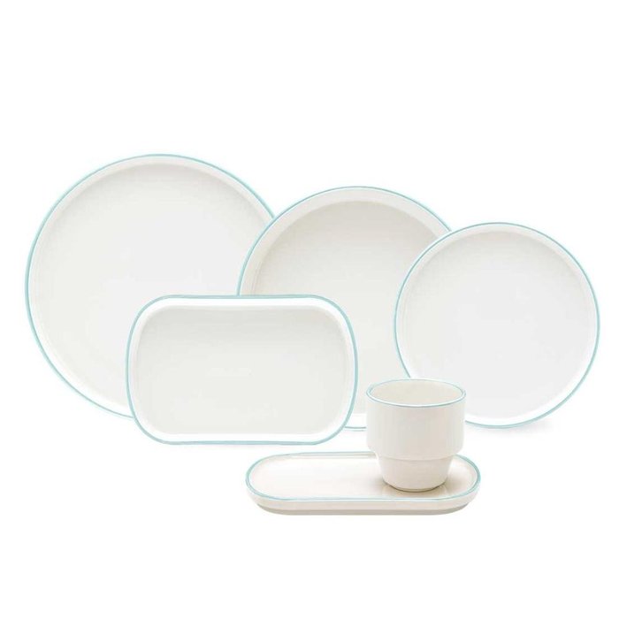 A coleção Elo une funcionalidade e beleza nas mesmas peças. O nome que batiza o modelo diz respeito à conexão entre cada peça: todos os itens são empilháveis e encaixam entre si ocupando menos espaço. Já a decoração de cada peça, vem da inspiração em nossas raízes tropicais, onde 3 frutas inspiraram a cor dos filetes feitos à mão. A decoração Araçá se conecta diretamente com os benefícios dessa fruta: um poderoso antioxidante de sabor cítrico. O cuidado com a alimentação e o bem-estar trazem o sentimento de serenidade representado aqui pela cor azul dos filetes. O acabamento brilhante é outra novidade da coleção deixando cada peça ainda mais elegante. O aparelho de jantar Elo é composto de 4 pratos rasos, 4 pratos fundos, 4 pratos salada, 4 pratos de sobremesa, 4 xícaras de chá com pires. Conteúdo da embalagem: 4 Pratos Fundos 22,5 Cm, 4 Pratos Rasos 26 Cm, 4 Pratos Sobremesa 20,3 Cm, 4 Pratos Saladas 22,5 Cm, 4 Xícaras Grandes 220 ML, 4 Pires 20,3 Cm- Garantia: 3 Meses para Defeitos de fabricação- Marca: Oxford- Tipo da embalagem: Papelão- Uso: Resistente a micro-ondas- Material: Cerâmica- Cor: Branco- Formato: Empilhável- Linha/Decoração: Elo Araçá- Decoração: Bicolor- Formato de venda: Kit- Quantidade de peças: 24 ATENÇÃO: Para compras de pessoa jurídica, cadastre os dados exatamente como consta em seu cartão do CNPJ.