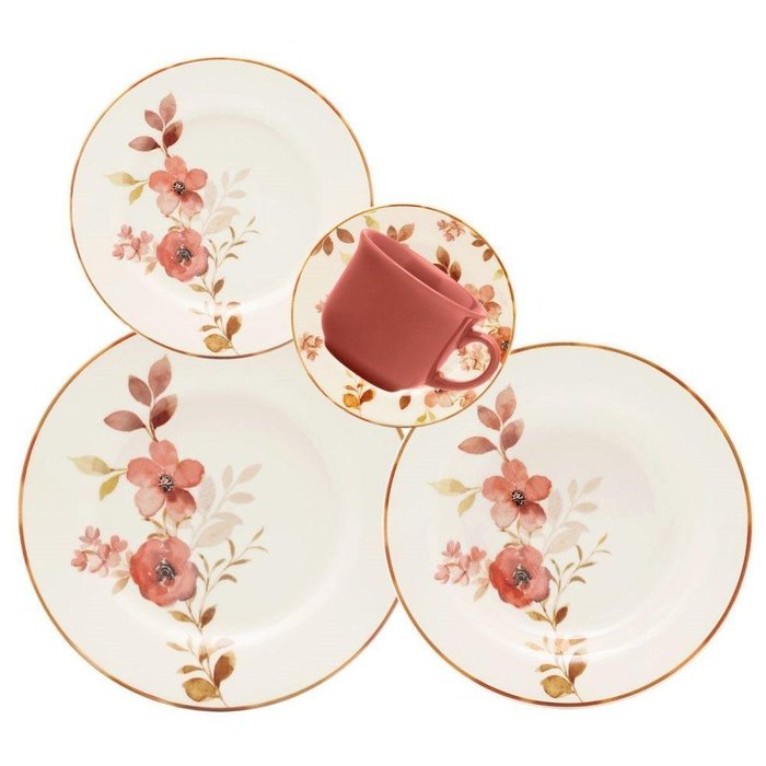 Aparelho de Jantar 30 Peças Chá Das 5 Oxford Bege e goiaba