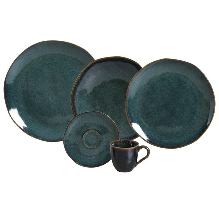Aparelho de Jantar 30 Peças Orgânico Oceano Porto Brasil Verde petróleo e marrom