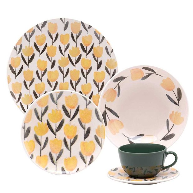 Seguindo a pegada do vintage que se transforma para edições mais contemporâneas, temos a coleção Unni Encanto que bebe diretamente da fonte da tendência Grandmillenial com uma padronagem floral que remete a tecidos retrô e toalhas de mesa. As flores amarelas lembram o formato de tulipas e foram desenhadas em aquarela. O aparelho de jantar de 30 peças é composto por 6 pratos rasos, 6 pratos fundos, 6 pratos de sobremesa e 6 xícaras de chá com pires.Conteúdo da embalagem: 6 Pratos Fundos 20,5 Cm, 6 Pratos Rasos 26 Cm, 6 Pratos Sobremesa 18,5 Cm, 6 Xícaras Grandes 200 ML, 6 Pires 14 Cm- Garantia: 3 Meses para Defeitos de fabricação- Marca: Oxford- Tipo da embalagem: Papelão- Uso: Resistente a micro-ondas- Material: Cerâmica- Cor: Amarelo- Formato: Redondo- Linha/Decoração: Unni Encanto- Decoração: Estampado- Formato de venda: Kit- Quantidade de peças: 30- É produto personalizado: Não ATENÇÃO: Para compras de pessoa jurídica, cadastre os dados exatamente como consta em seu cartão do CNPJ.