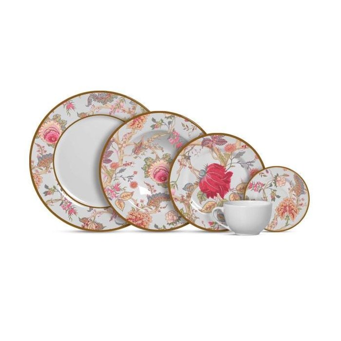 O aparelho de Jantar China Flowers é composto por 20 peças, desenvolvido em cerâmica Faiança Feldspática, diferenciada por sua variedade de cores que entram em harmonia com as estampas, enobrecendo a sua mesa e deixando o seu jantar mais elegante, convidativo e saudável, pois não libera substâncias tóxicas.