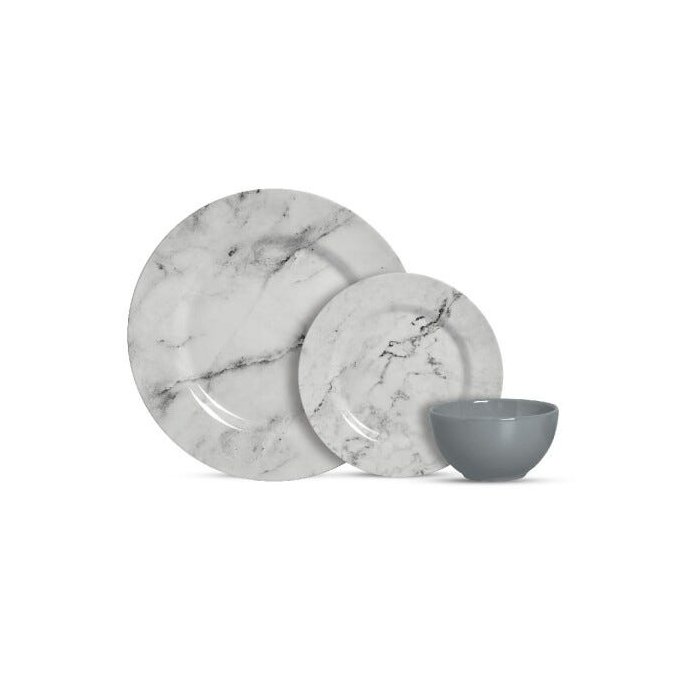 Aparelho de Jantar com 12 Peças Marmore + Bowl Cinza Metalizado