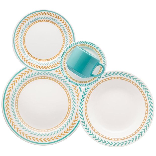 Na cultura dos antigos povos gregos e romanos, as folhas de louro eram trançadas compondo uma espécie de ornamento que coroava e simbolizava a vitória. Era um sinal público de glória e reconhecimento aos generais vitoriosos das guerras. A coleção Donna Louros da Biona traz este símbolo para a mesa! Os pratos contam com decorações de folhas de louros nas bordas, enquanto a xícara é toda esmaltada na cor verde água. Uma louça delicada e perfeita para o uso diário!Conteúdo da embalagem: 4 Pratos Rasos 24cm • 4 Pratos Fundos 21,5cm • 4 Pratos Sobremesa 18cm • 4 Pires de Chá 14cm • 4 Xícaras De Chá 180ml- Garantia: 3 Meses para Defeitos de fabricação- Marca: Biona- Uso: Resistente a micro-ondas e lava-louças - Tipo da embalagem: Papelão pardo- Material: Cerâmica- Cor: Multicor- Decoração: Estampado- Tipo do jogo: Jantar e almoço- Formato: Redondo- É produto personalizado: Não- Quantidade de peças: 20
