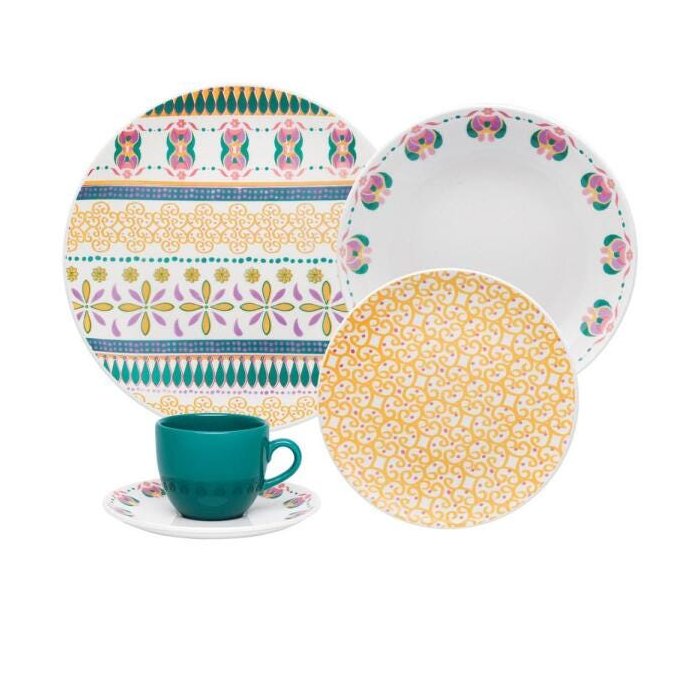 Aparelho de Jantar e Chá 30 Peças Coup Alegoria Multicor