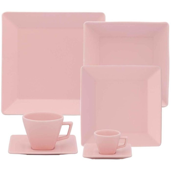 A simetria do formato quadrado do modelo Quartier traz modernidade e sofisticação à mesa. Mas com um toque de cor é possível adicionar suavidade e alegria nessa mistura. A nova cor Tutti-Frutti fala por si só: tom de rosa suave, mas nem por isso com menos personalidade. Além de ficar ótimo quando utilizado com o Quartier Menta, as peças ainda possuem o lindo acabamento acetinado que proporciona uma sensação aconchegante ao toque.Conteúdo da embalagem: 6 pratos rasos com medidas de 26,5 x 26,5 cm / 6 pratos fundos com medidas de 21 x 21 cm / 6 pratos para sobremesa com medidas de 20 x 20 cm / 6 xícaras para chá (200 ml de capacidade) com pires (medidas de 14 x 14 cm) / 6 xícaras para café (75 ml de capacidade) com pires (medidas de 11 x 11 cm)- Garantia: 3 Meses para Defeitos de fabricação- Marca: Oxford- Uso: Resistente a micro-ondas e lava-louças- Tipo da embalagem: Papelão pardo- Material: Pocelana- Cor: Rosa- Decoração: Monocromático- Formato: Quadrado- Tipo do jogo: Jantar e Almoço- É produto personalizado: Não