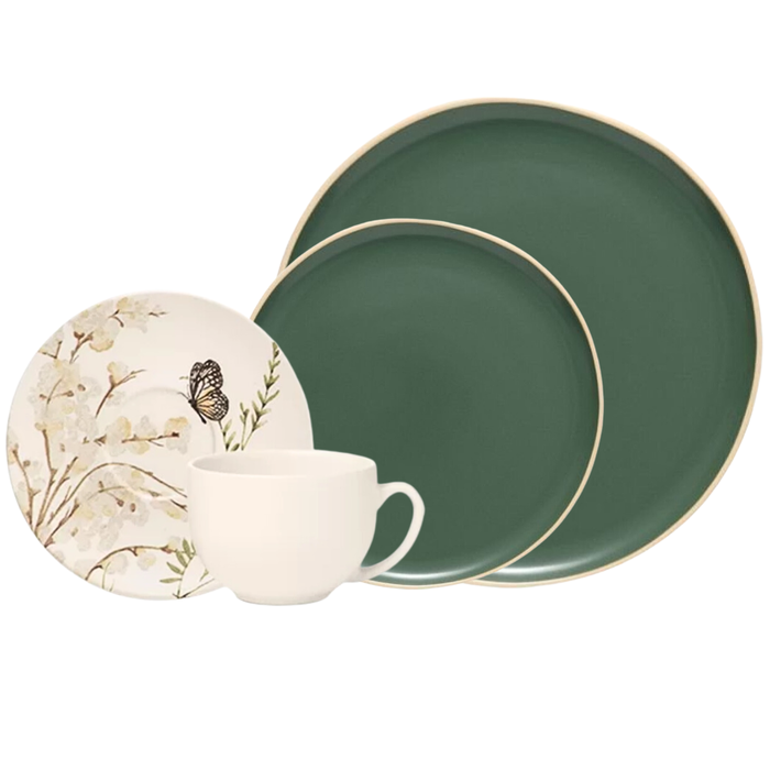 Aparelho de Jantar em Cerâmica Individual Jogo de Jantar Aquarelle Garden Mesa Posta Café da Manhã L Verde