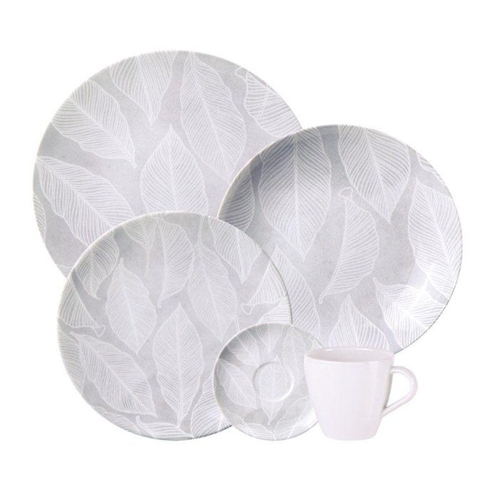 Aparelho de Jantar em Porcelana 20 Peças Arbo TramontinaO aparelho de jantar Tramontina Arbo em porcelana decorada 20 peças é perfeito para quem busca uma mesa completa e um estilo neutro, sóbrio e atemporal na sua composição. Fabricado em porcelana tradicional Tramontina, cada peça possui porosidade próxima de zero e decoração inspirada na natureza, com folhas brancas delicadamente caídas sobre o fundo que imita pedra, trazendo assim, um toque contemporâneo para cada refeição. O estilo Flora da coleção Arbo traz cor e delicadeza para qualquer estação. Seja para um jantar especial ou para o uso diário, esse aparelho de jantar promove um serviço completo. Ele combina perfeitamente com qualquer decoração de mesa e certamente impressionar seus convidados, afinal, as flores são sempre bem-vindas!Aparelho de Jantar em Porcelana 20 Peças Arbo Tramontina - Incluso4 Pratos Rasos - 25 cm4 Pratos Fundos - 21 cm4 Pratos Sobremesa - 19 cm4 Pires de Chá - 14 cm4 Xícaras de Chá - 200 mlAparelho de Jantar em Porcelana 20 Peças Arbo Tramontina - InformaçõesUso: Resistente a micro-ondas, resistente a lava-louçasMaterial: PorcelanaFormato: RedondoDecoração: ArboCor: Branco e cinza