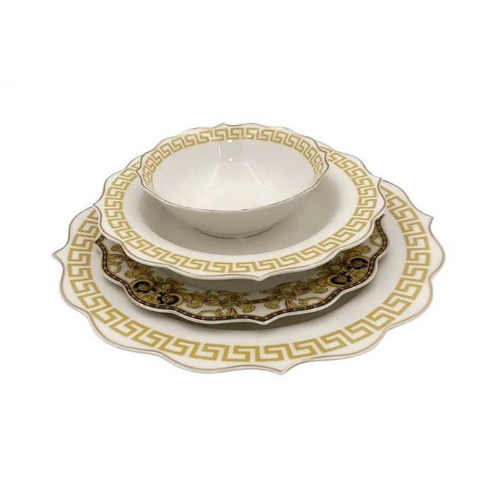 Aparelho de Jantar em Porcelana Branco com Detalhes Dourado - 24 Peças