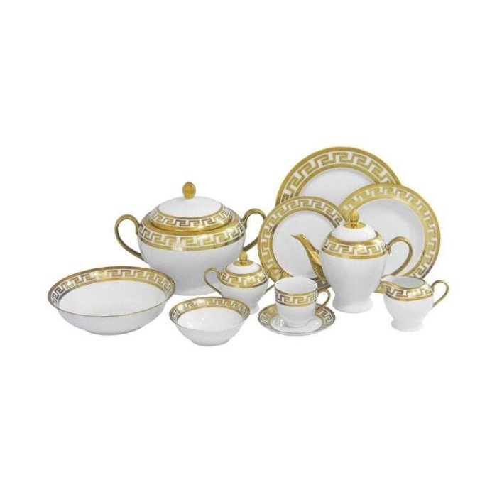 Aparelho de Jantar Estilo Grego com Detalhes em Dourado - 81 Peças Branco