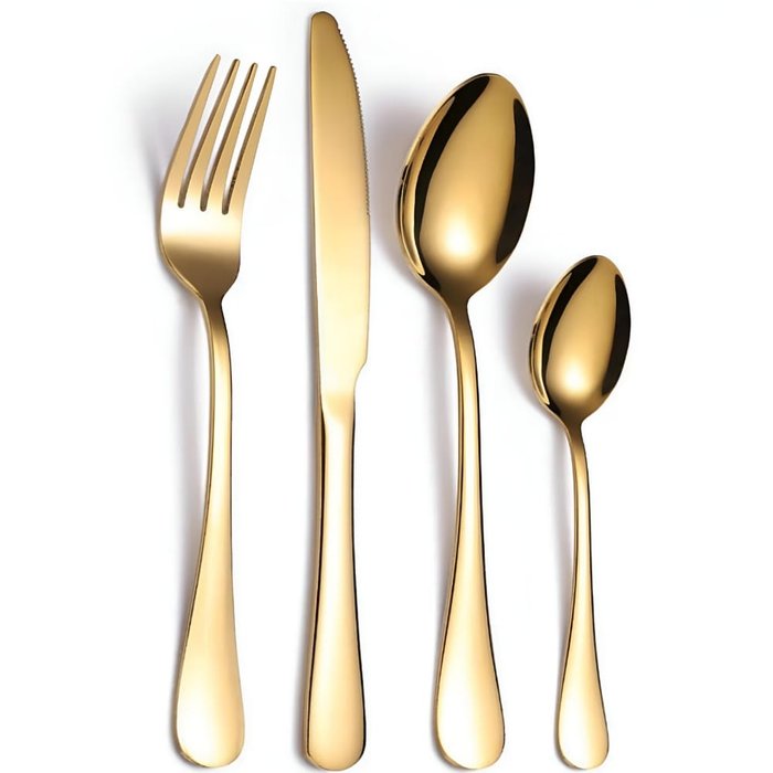 Aparelho de Jantar Inox 4 Talheres Restaurante Buffet Hotel em Aço Inox Dourado