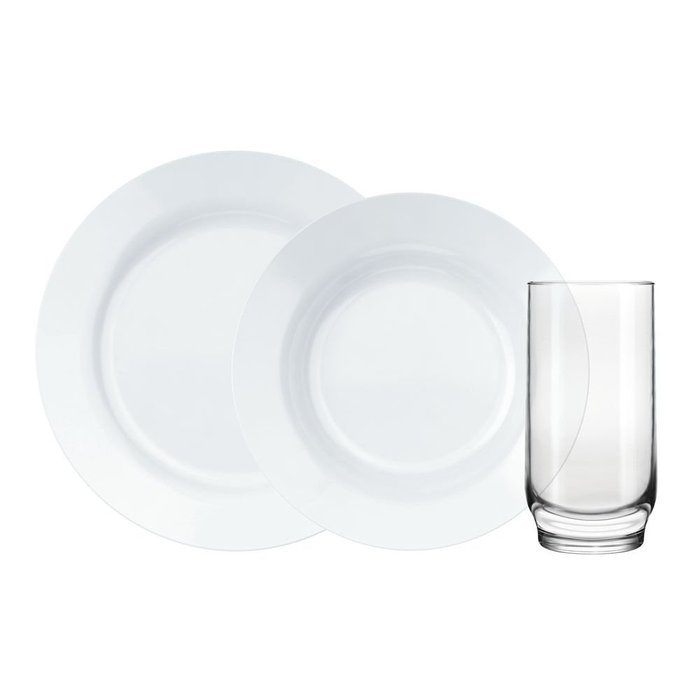 | Mais Informações | Composição: 04 Pratos Rasos 24cm, 04 Pratos Fundos 23cm, 4 Copos Light ‘s 300ml. |