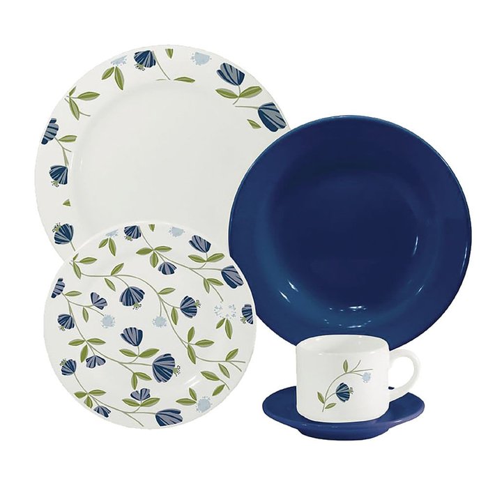 Aparelho de Jantar Oxford Biona Donna Floral Azul em Cerâmica com 20 Peças