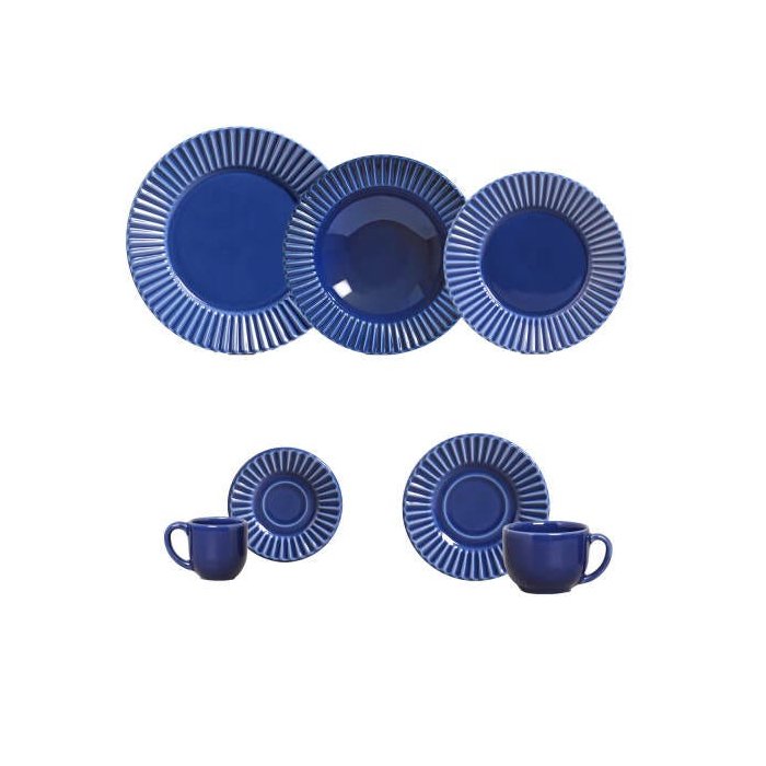 Aparelho de Jantar Plisse Azul Navy 42 Peças Porto Brasil