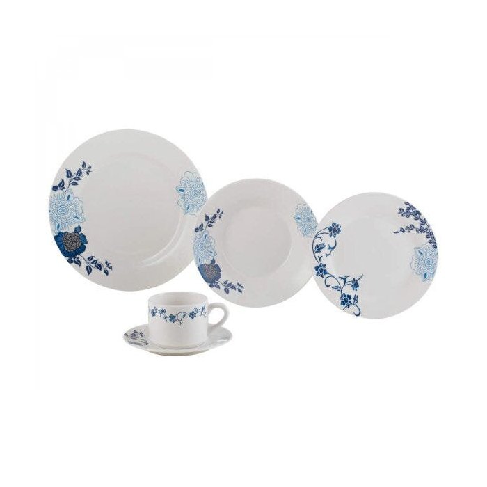 | Itens Inclusos | 4 Pratos Rasos: 27cm, 4 Pratos Fundos: 20cm, 4 Pratos Sobremesa: 19cm, 4 Xícaras Chá: 220ml e 4 Pires: 15cmx2cm. |