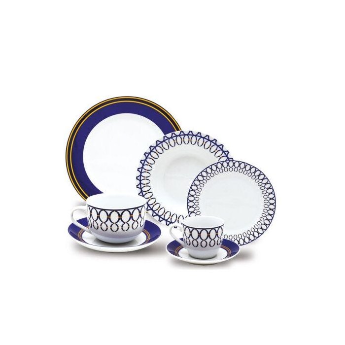 Aparelho de Jantar Porcelana Azul e Amarelo 42 Peças Class Home