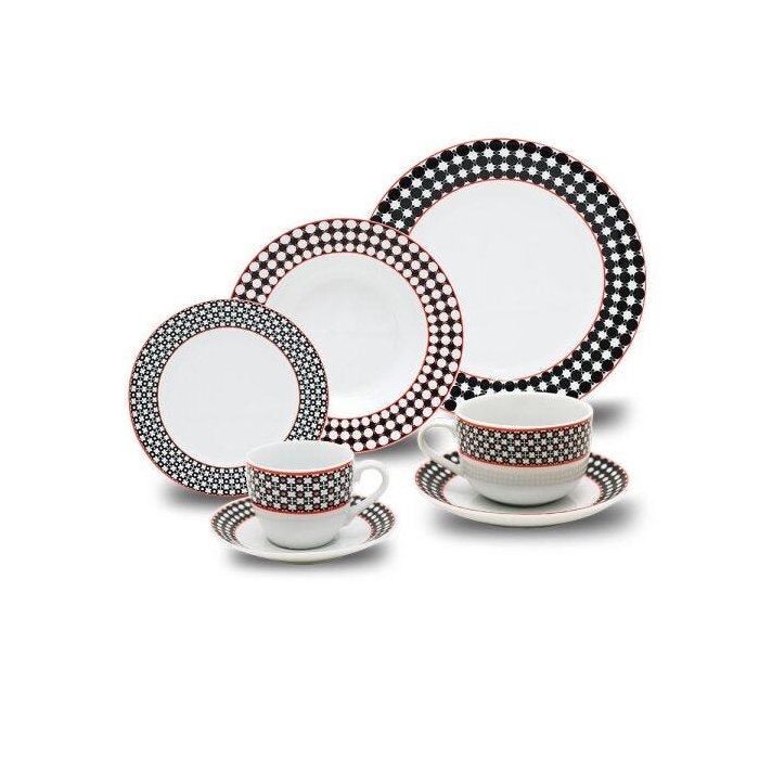 Aparelho de Jantar Porcelana Preto e Vermelho 42 Peças Class Home