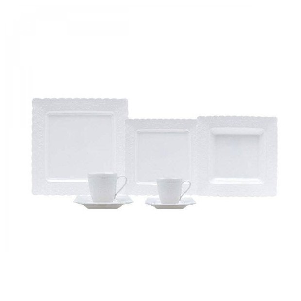 Aparelho de Jantar Porcelana Quadrado 42 Peças Heart Lyor branco