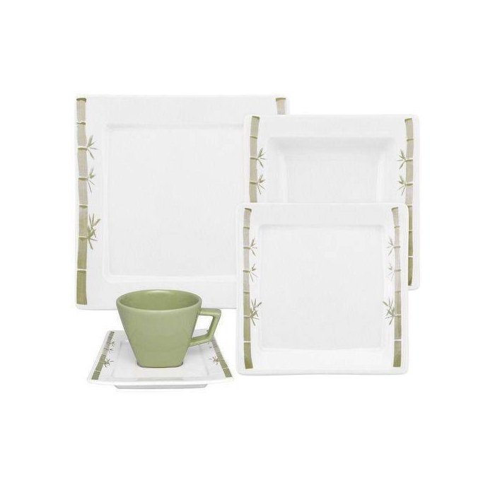 O bambu é um elemento muito presente na cultura japonesa. Uma de suas principais características é a flexibilidade, o que faz com que ele seja capaz de se adaptar às mais diversas situações. Em alguns ensinamentos japoneses, isso é trazido como exemplo para o ser humano, como uma lição de que é preciso ceder e se adaptar. No aparelho de jantar Nara Imperial o bambu ganha destaque, em seu formato quadrado com traços inspirados na pintura manual. O conjunto é de porcelana na cor creme, conta com: 06 - Pratos Rasos 26 x 26 cm; 06 - Pratos Fundos 21 x 21 x 4 cm; 06 - Pratos Sobremesa 21 x 21 cm; 06 - Xícaras De Chá 200 ml; 06 - Pires 14 x 14 cm.