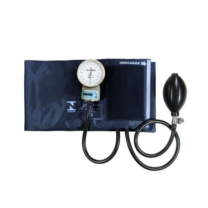 O Aparelho de Pressão P.A.Med Adulto possui braçadeira em nylon antialérgico com fechamento em Fecho de contato. Seu manômetro é de metal cromado e possui entrada e saída de ar regulada por válvula de inox de alta durabilidade, o que garante uma medição muito mais precisa.