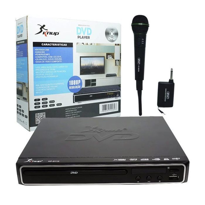 Aparelho Dvd Player HDMI Hd 5.1 RCA Mp3 Função Karaoke Microfone sem Fio Knup Kp-D112 Preto