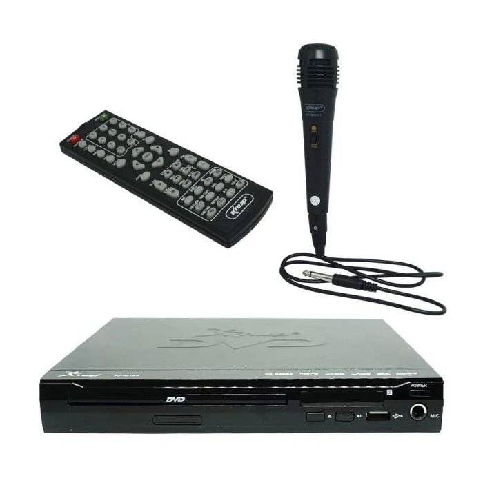 Itens inclusos: 1 Dvd Player, 1 Cabo AV, 1 Controle Remoto, 1 Microfone com Fio, 1 Cabo do Microfone, 1 Manual (português)