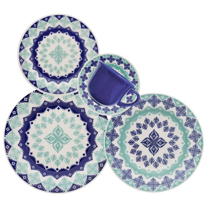 | Itens Inclusos | * 4 pratos rasos com 24 cm * 4 pratos fundos com 22 cm * 4 pratos para sobremesa com 19 cm * 4 xícaras para chá (180 ml de capacidade * 4 pires (16,5 cm de diâmetro) |