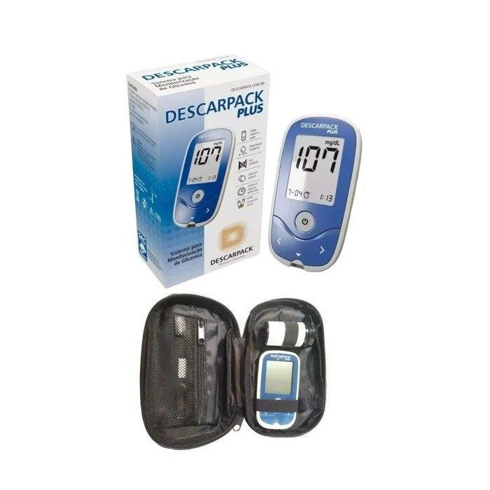 Sistema de Monitoramento Descarpack Plus Os aparelhos de glicemia mais recentes também conseguem medir o açúcar de sangue retirado do braço ou coxa, por exemplo. Alguns aparelhos de glicemia podem funcionar de forma diferente, sendo, por isso, importante ler as instruções de utilização do fabricante, antes de usar o aparelho. Especificações Técnicas Aparelho Descarpack Plus - Sangue venoso ou capilar - Sem codificação - Sistema reagente GDH-FAD - Requer apenas 0,5 µL de volume de amostra - Ampla faixa de hematócrito 0 -70% - Capacidade de memória para até 500 testes - Liga e desliga automaticamente - Resultados precisos do teste em 5 segundos - Acompanha diário de autoteste para melhor controle da glicemia - Sistema para Monitorização de Glicemia Descarpack Plus são avaliadas e regularizadas CONFORME NORMAS DA ISO 15197:2013 - Eletrodo das tiras reagentes em ouro Obs: Baixe o software e mantenha os dados de seu monitoramento no seu celular