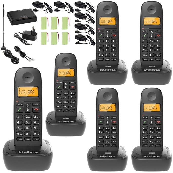 5 Unidade: TS 2511 Intelbras Composto por (5 fone, 5 base, 5 bateria recarregável, 5 adaptador de tensão bivolt, 5 manual do usuário)