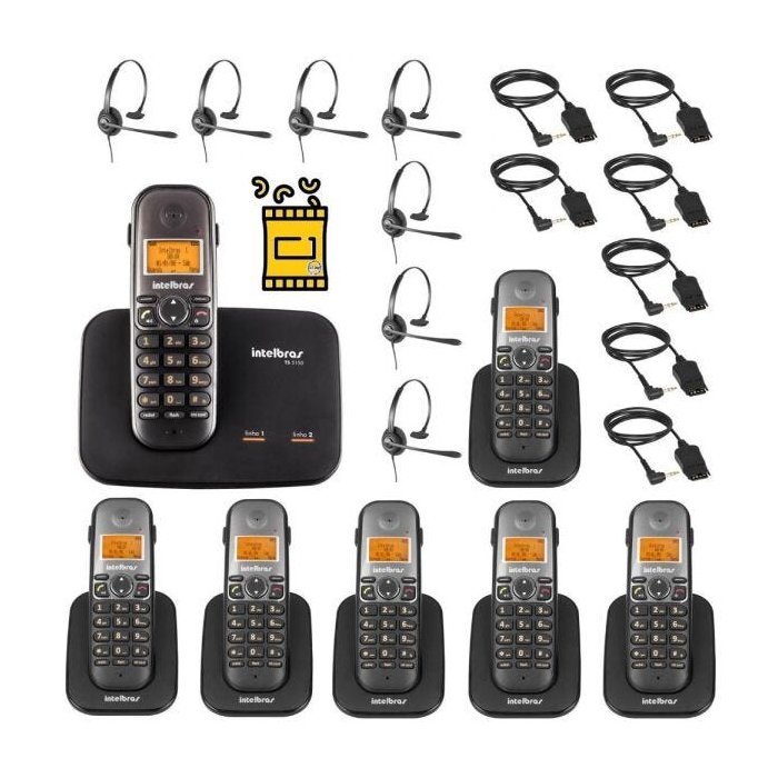 Conteudo do Kit: 1 Unidade: Telefone sem Fio TS 5150 Intelbras (1 fone , 1 base , 1 adaptador de tensão bivolt , 1 bateria recarregável , 2 cabos de linha telefônica, 1 manual do usuário) 6 Unidades - Ramal sem Fio digital TS 5121 Intelbras ( 6 Fone - 6 Carregador de Bateria Para Ramal - 6 Bateria recarregável - 6 Adaptador de Tensão Bivolt - 6 Manual do Usuário ) 7 Unidades - Headset THS 55 Intelbras 7 Unidades - CORDãO QDP 10 Intelbras 1 Unidade - Q/snacks salgadinhos de quinoa para apresentação do Produto. Obs: O Headset THS 55 Possui conector de desengate rápido QD (quick disconnect). O Telefone sem Fio TS 5150 e o Ramal TS 5121 Tem Conexão Via P1. O Cordão QDP 10 Intelbras Será usado para conectar o Headset ao Telefone. Alcance: Ate 50 Metros em Ambientes Fechados e Com Barreiras, e Ate 300 metros em Local Aberto. ( O alcance pode variar de acordo com a quantidade de barreiras ou interferências). Cor: Preto O TS 5150 tem entrada para duas linhas, trazendo vantagens para quem usa no trabalho ou na residência. Com tecnologia DECT, identificador de chamadas, viva-voz e capacidade de expansão para até 10 ramais (base + 9 ramais), é facilidade em dobro pra você. Identificação de chamadas Viva-voz Capacidade para até 10 ramais (base + 9 ramais)¹ Display e teclado luminosos Entrada para fone de ouvido² Bloqueio de chamadas (a cobrar e originadas) Agenda para 200 contatos, compartilhada entre os ramais¹ Modo Babá³ Prendedor de cinto 10 tipos de toques polifônicos com 7 opções de volume Registro de 15 chamadas atendidas, 20 não atendidas e 15 originadas Comunicação interna, transferência de chamadas e conferência a três¹ ¹ Funções realizáveis entre Telefones sem Fio Intelbras da série TS 51 ² Acessório vendido separadamente. ³ É necessário possuir dois ramais para executar essa função. Temperatura da Operação: 0 °C a 50 °C Adaptador de tensão Entrada: 100/240 V ~ 50-60 Hz Saída: 7,5 Vdc – 300 mA Consumo de energia: Em repouso: aprox.: 1,75 W ou 1,260 KWh/mês Em uso: aprox.: 2,05 W ou 1,476 KWh/mês Bateria: 2,4 Vdc - 600mAh Duração da bateria : Em repouso: 200 h Em conversação: 20 h Frequência de operação: 1.910 a 1.920 MHz Tempo de carga: Aproximadamente: 10 h Dimensões ( A x L x P): Base: 84 × 148 × 96 mm Fone: 154 × 50 × 34 mm