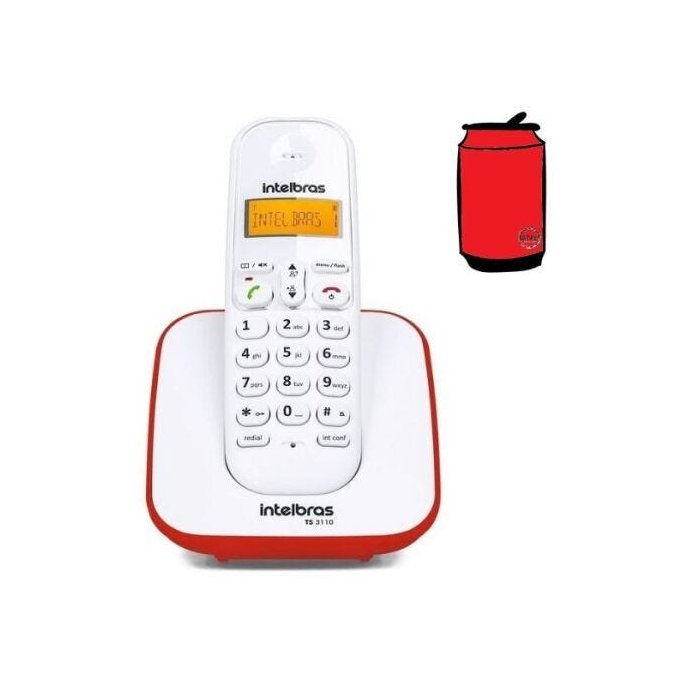 Aparelho Telefone Fixo sem Fio Digital Branco Vermelho Bina