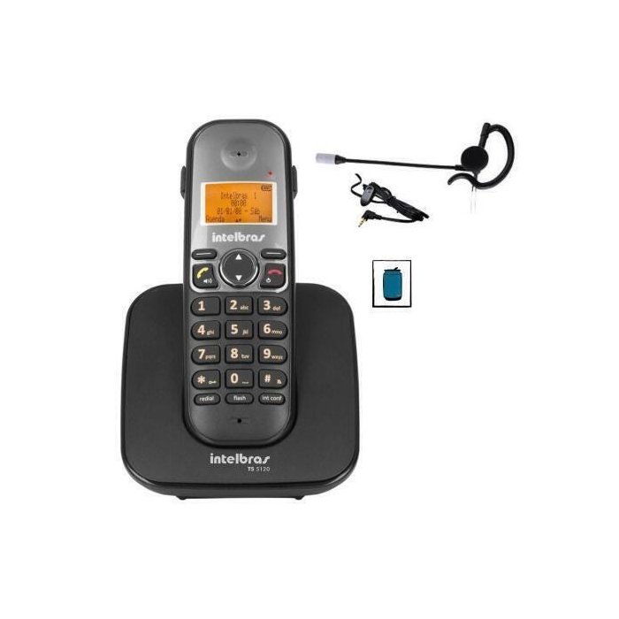 1 Unidade - Telefone sem Fio TS 5120 Intelbras (1 fone, 1 base, 1 bateria recarregável, 1 adaptador de tensão bivolt, 1 cabo de linha telefônica, 1 manual do usuário)