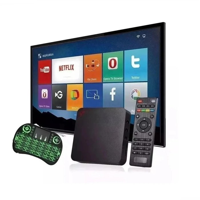 Aparelho Transforme Sua Tv Em Smart Tv Com Teclado LedConverta sua tv comum em uma smart tv e ainda tenha suporte no whatsapp 24h para aprender a utilizar Atenção: esse equipamento é um mini pc com sistema android para assistir videos em uma infinidade de aplicativos, os app já instalados são o youtube e netflix.Não é receptor de canais- recomendamos pesquisar sobre o produto para ter certeza da compra,Descrição:- android 10.1 atualizado- roda vídeos em 4k- suporta vídeos em h265- Ram: 4Gb- Rom: 64gb Rom, e da pra expandir a memória com cartão micro sd- Chipset Cortex-A7MP RK3229 Quad-core Arm processador de Núcleo- Gpu Penta-core Arm Mali-400- Sdram 4 Gb DDR3- Flash 64 Gb- Porta Usb 4 x Usb Host- A Lan 1 x RJ45 (100 M)- Hdmi Para Fora 1 x Hdmi 2.0- Micro Sd 1 x slot para cartão Sd até 32gb- Fonte de Alimentação 1 x Dc Jack bivolt- Spdif 1 x Spdif- Av Out 1 x Av out- Wi-Fi 802.11a/b/g/n/ac, muito Forte sinal wifi 2.4G- Ethernet 10/100 M- Carregador bivoltDimensão e peso:Tamanho do pacote (p x l x a): 17,00 x 11,00 x 5,50 centímetrosPeso da embalagem: 0,4250 kgTamanho do produto (p x l x a): 8,20 x 8,20 x 1,70 centímetrosPeso do produto: 0,1500 kgConteúdo da embalagem:1 -tv box1 - controle remoto1 - carregador adaptador1 - cabo hdmi1 - manual1 - teclado led
