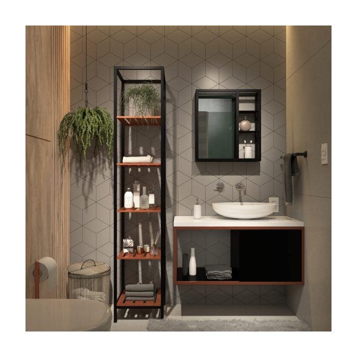 Apenas Gabinete Armário Banheiro Madeira Metal Industrial 1 Porta Sublime - Preto Com Cobre