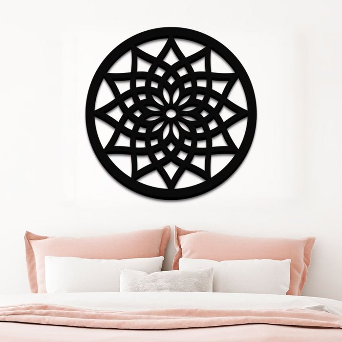 Aplique De Parede Em Mdf 6mm Vazado Mandala Estrela 50cm Preto