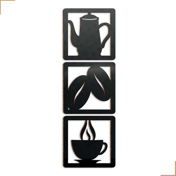 Aplique Decorativo Bule Grãos Xicára em Mdf 20x20cm Preto