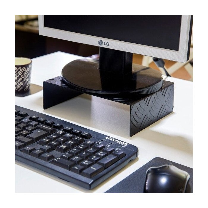 Apoio para monitor com estilo industrial, fabricado em chapa de alumínio xadrez, tem designer exclusivo para quem gosta de tudo com muito estilo.