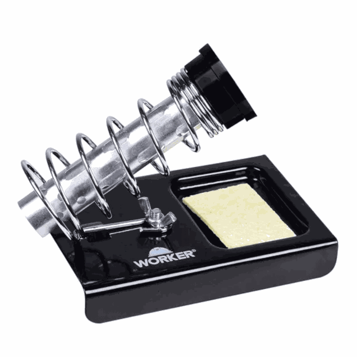 Marca: Worker Material da Base: Chapa metálica reforçada Apoio: Espiral metálico com proteção em ABS Dimensões da Base: 12,5 cm x 8,5 cm Inclui: Esponja para limpeza do ferro de solda